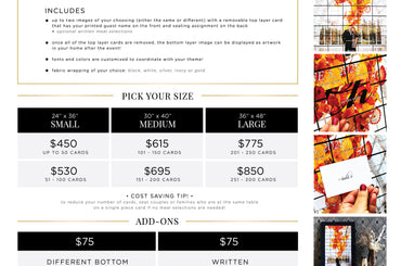 Provide instructions that is personalized for your event! Our signs look gorgeous alone or can be placed in a frame, easel or holder for an added accent! *Frame not included