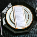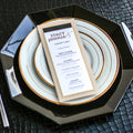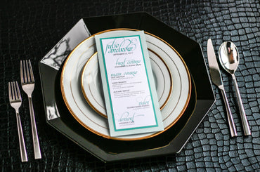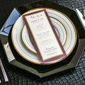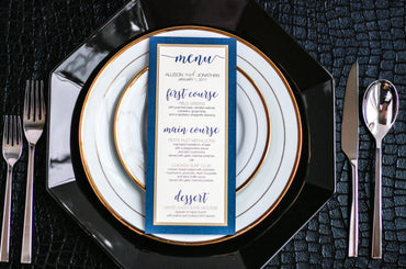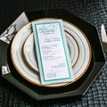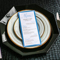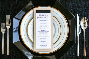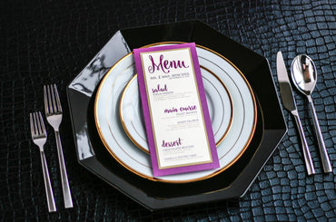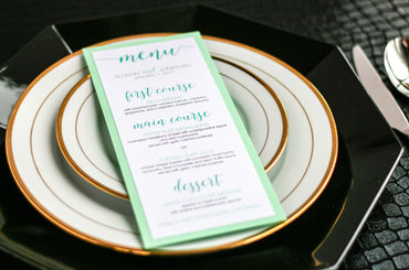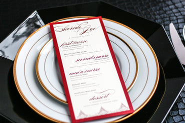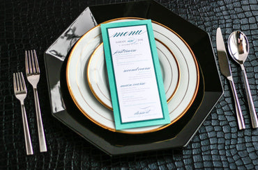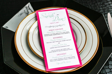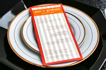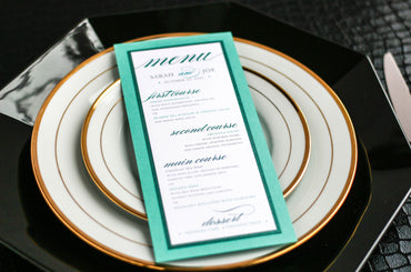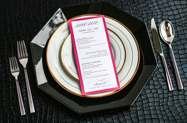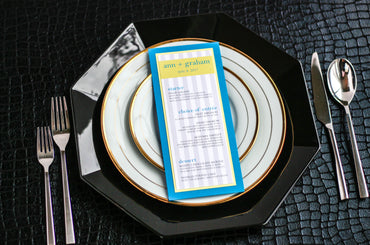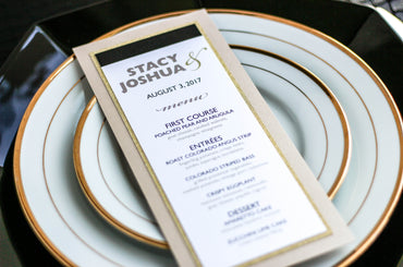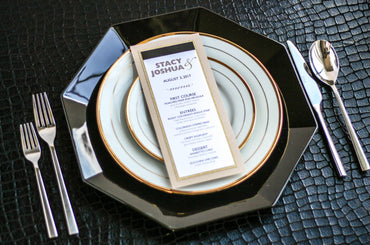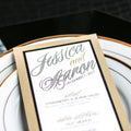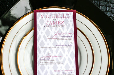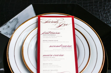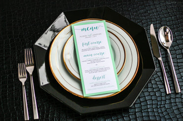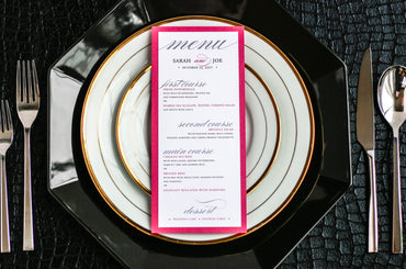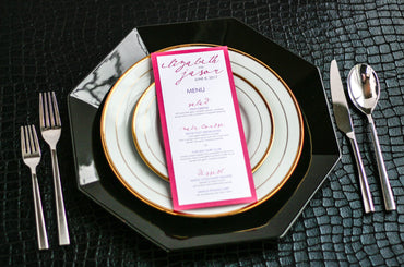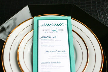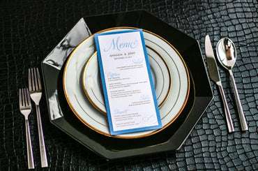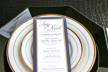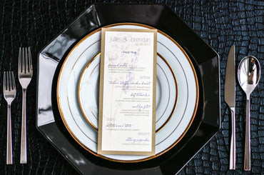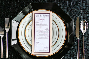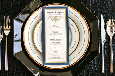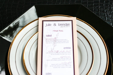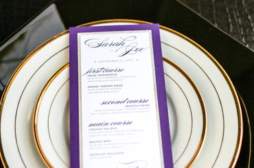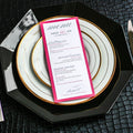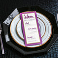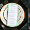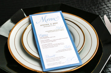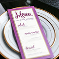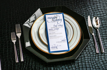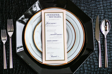 Give your table settings the perfect accessory! Our menus provide your guests with a listing of the delectable dishes on your special day while adding a dash of elegance to your table decor!CALLIGRAPHY CHIC -