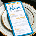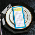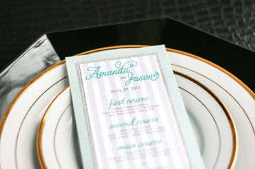 Give your table settings the perfect accessory! Our menus provide your guests with a listing of the delectable dishes on your special day while adding a dash of elegance to your table decor!PREPPY CHIC -