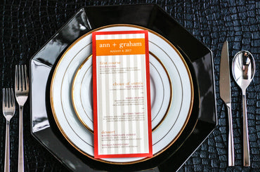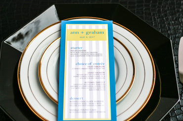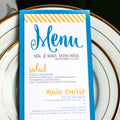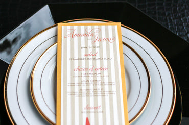 Give your table settings the perfect accessory! Our menus provide your guests with a listing of the delectable dishes on your special day while adding a dash of elegance to your table decor!BOLD STRIPED -