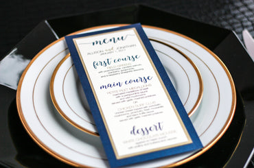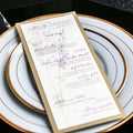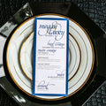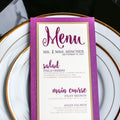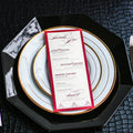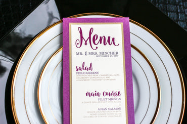 Give your table settings the perfect accessory with a Dinner Menu! Our menus provide your guests with a listing of the delectable dishes on your special day while adding a dash of elegance to your table decor! Check out the other menu styles in our shop for more inspiration and examples!CLASSIC ELEGANCE -