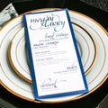 Give your table settings the perfect accessory with a Dinner Menu! Our menus provide your guests with a listing of the delectable dishes on your special day while adding a dash of elegance to your table decor! Check out the other menu styles in our shop for more inspiration and examples!CALLIGRAPHY CHIC -