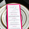 Give your table settings the perfect accessory! Our menus provide your guests with a listing of the delectable dishes on your special day while adding a dash of elegance to your table decor!WHIMSICAL CALLIGRAPHY -