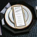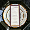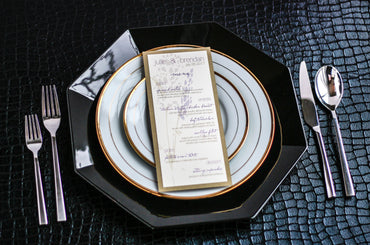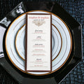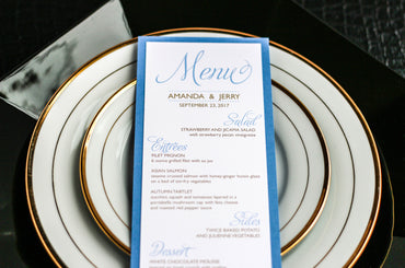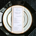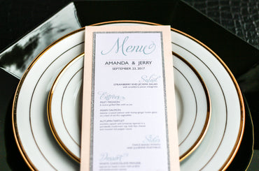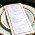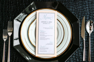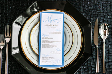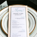 Give your table settings the perfect accessory! Our menus provide your guests with a listing of the delectable dishes on your special day while adding a dash of elegance to your table decor!CLASSIC ELEGANCE -