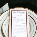 Give your table settings the perfect accessory with a Dinner Menu! Our menus provide your guests with a listing of the delectable dishes on your special day while adding a dash of elegance to your table decor! Check out the other menu styles in our shop for more inspiration and examples!CLASSIC ROMANCE -