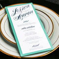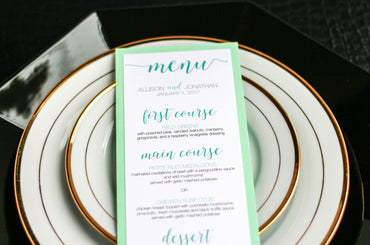 Give your table settings the perfect accessory with a Dinner Menu! Our menus provide your guests with a listing of the delectable dishes on your special day while adding a dash of elegance to your table decor! Check out the other menu styles in our shop for more inspiration and examples!Dinner Menus