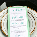Give your table settings the perfect accessory! Our menus provide your guests with a listing of the delectable dishes on your special day while adding a dash of elegance to your table decor!MODERN CALLIGRAPHY -