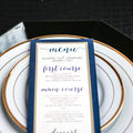 Give your table settings the perfect accessory with a Dinner Menu! Our menus provide your guests with a listing of the delectable dishes on your special day while adding a dash of elegance to your table decor! If you would like to elevate the look of your menu with 1 or 2 additional layers of cardstock in the colors of your choosing, check out the other menu listings in our shop!WHIMSICAL CALLIGRAPHY -