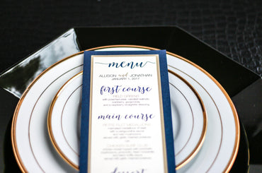 Give your table settings the perfect accessory! Our menus provide your guests with a listing of the delectable dishes on your special day while adding a dash of elegance to your table decor!Dinner Menus
