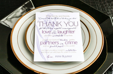 Stand out from the crowd by creating stationery personalized to your theme, colors and wording with our unique and affordable collection! Any of our designs can be customized with our selection of the finest quality materials, giving your stationery the perfect look for your event.