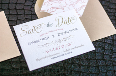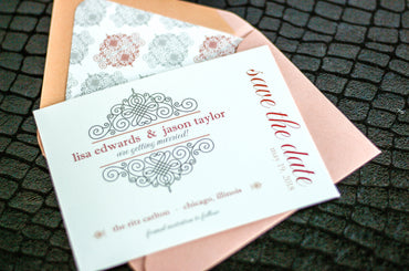 Make a memorable first impression for your guests! Save the dates are important for holiday, destination style events, or if many guests are coming from out of town.EUROPEAN SCROLL -