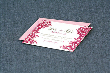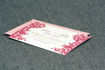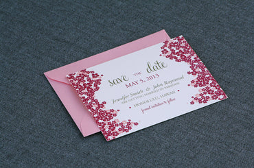 Make a memorable first impression for your guests! Save the dates are important for holiday, destination style events, or if many guests are coming from out of town.ROMANTIC FLOURISH -