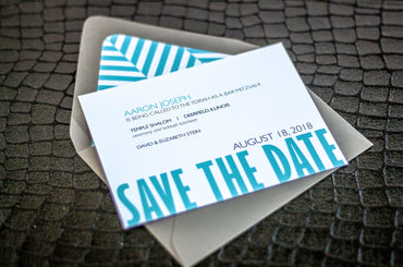 Make a memorable first impression for your guests! Save the dates are important for holiday, destination style events, or if many guests are coming from out of town.STRIPED MITZVAH -