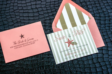 Make a memorable first impression for your guests! Save the dates are important for holiday, destination style events, or if many guests are coming from out of town.STARFISH AND SHELL -