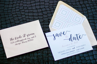Make a memorable first impression for your guests! Save the dates are important for holiday, destination style events, or if many guests are coming from out of town.PLAYFUL CALLIGRAPHY -