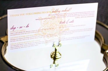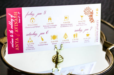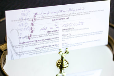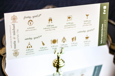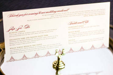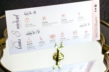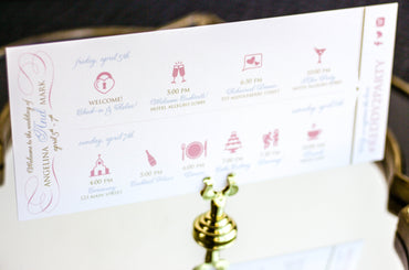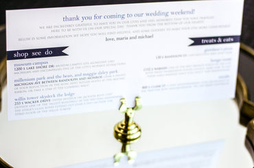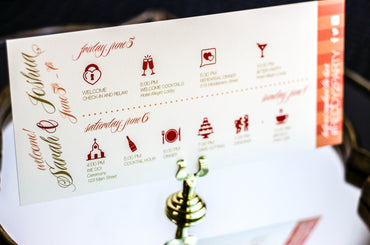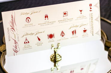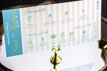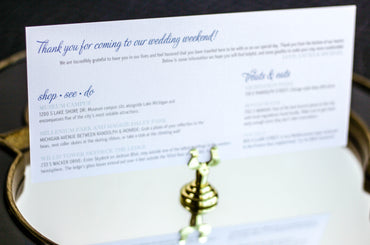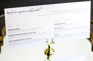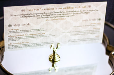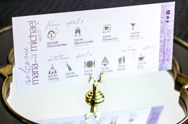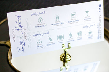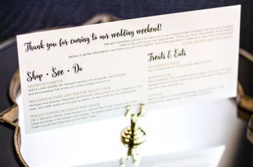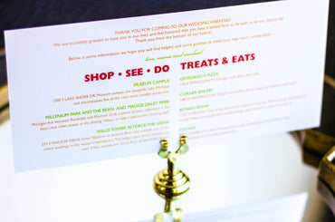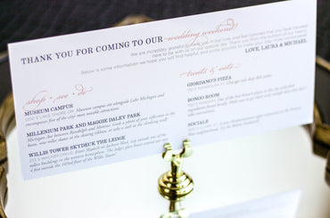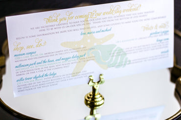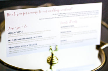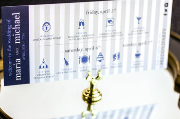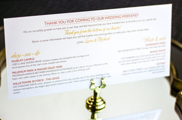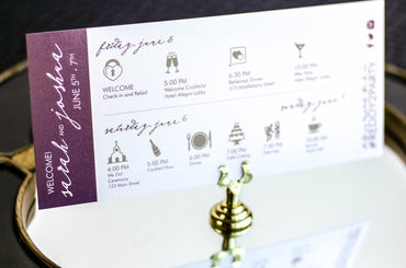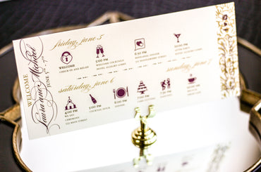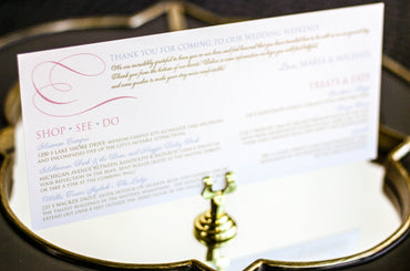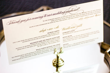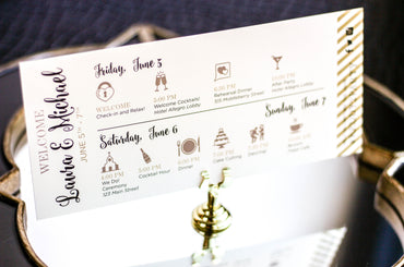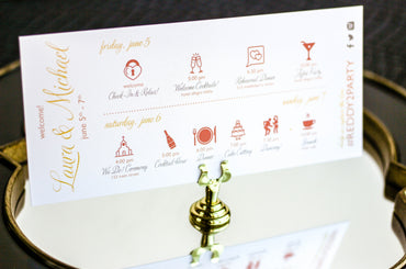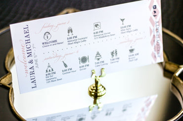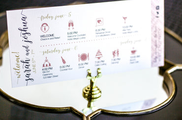 Provide your guests with a detailed outline of your weekend events. Both local and out of town guests will benefit from this organized itinerary of noteworthy information!