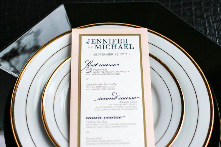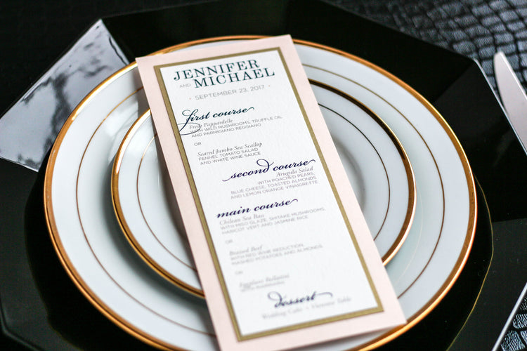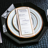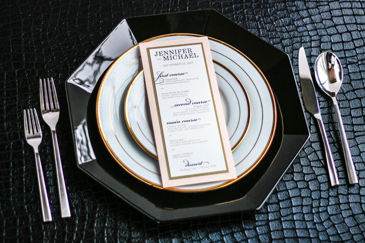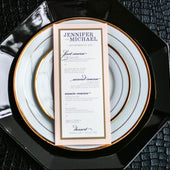Give your table settings the perfect accessory! Our menus provide your guests with a listing of the delectable dishes on your special day while adding a dash of elegance to your table decor!