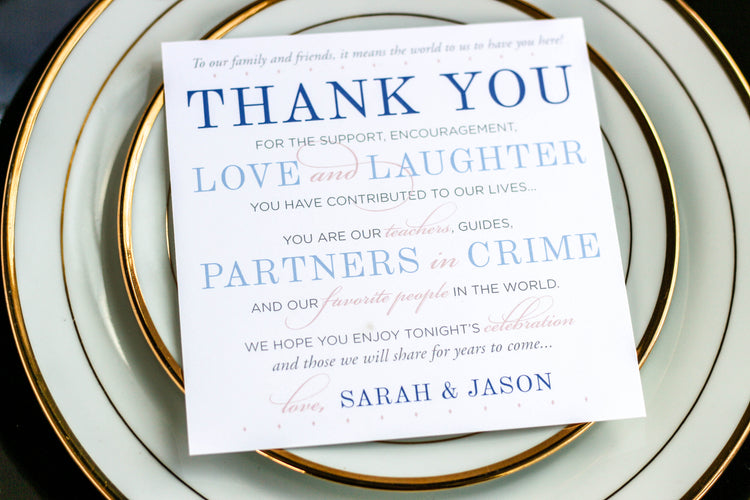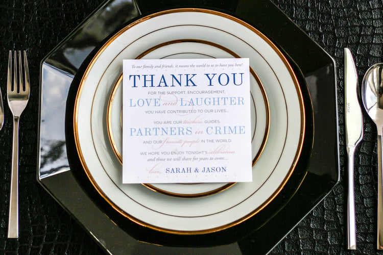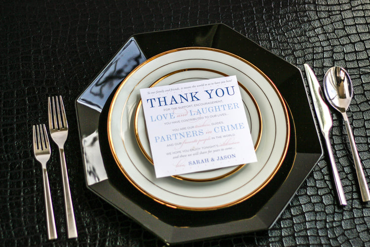 Any of our designs can be personalized with our selection of the finest quality cardstocks and colors to coordinate beautifully with your decor. All of our stationery is professionally printed on a digital offset press, ensuring only the best quality for your event.