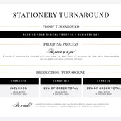 Stationery approval and payment must be made by 12pm Central Time or production will begin on the next business day.