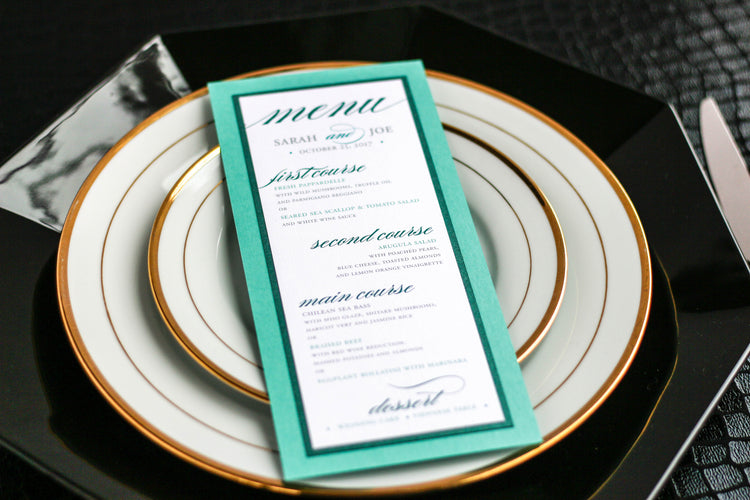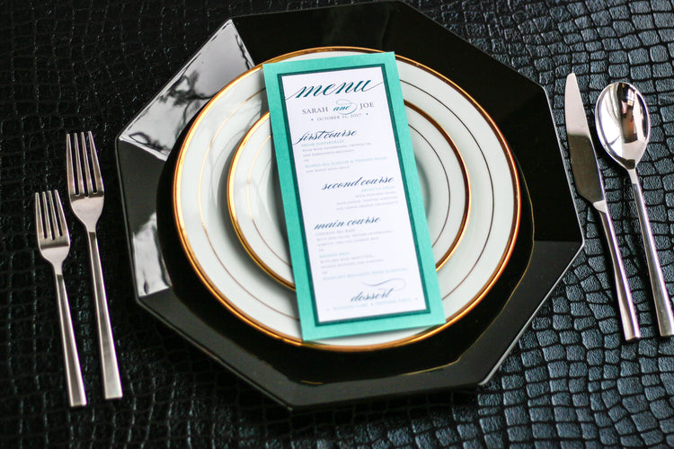 Give your table settings the perfect accessory! Our menus provide your guests with a listing of the delectable dishes on your special day while adding a dash of elegance to your table decor!