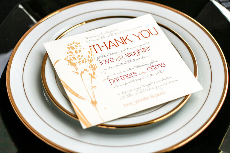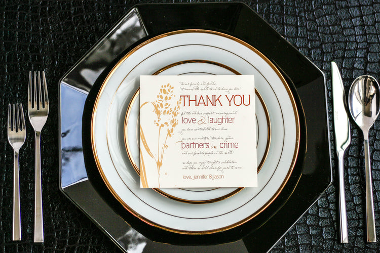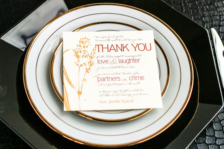 Any of our designs can be personalized with our selection of the finest quality cardstocks and colors to coordinate beautifully with your decor. All of our stationery is professionally printed on a digital offset press, ensuring only the best quality for your event.